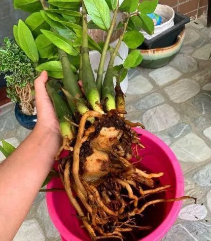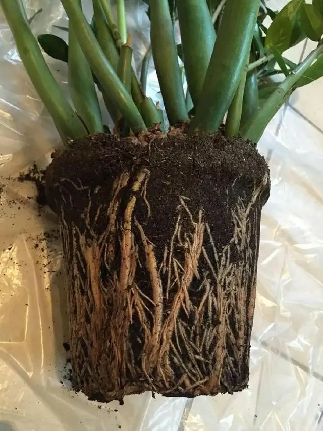 Củ cây kim tiền được chăm sóc đúng cách sẽ có rễ to, bộ rễ phát triển tốt, lá kép lông chim dài, để thúc đẩy cây phát triển nhanh, tốt nhất mỗi năm nên lật chậu một lần và thay đất mỗi năm một lần, vì nói chung đất sử dụng một năm thì chất dinh dưỡng trong đó sẽ giảm đi, đã cạn kiệt, nếu tiếp tục sử dụng sẽ không cung cấp được chất dinh dưỡng cho cây, đồng thời dễ bị kiềm hóa, chai cứng, điều này cực kỳ bất lợi cho sự phát triển của cây kim tiền.